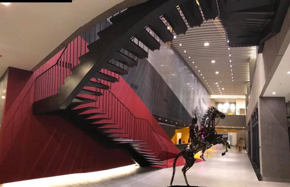 Custom staircase, front office, and rotating wall for Jackie Chan's Stunt training facilities